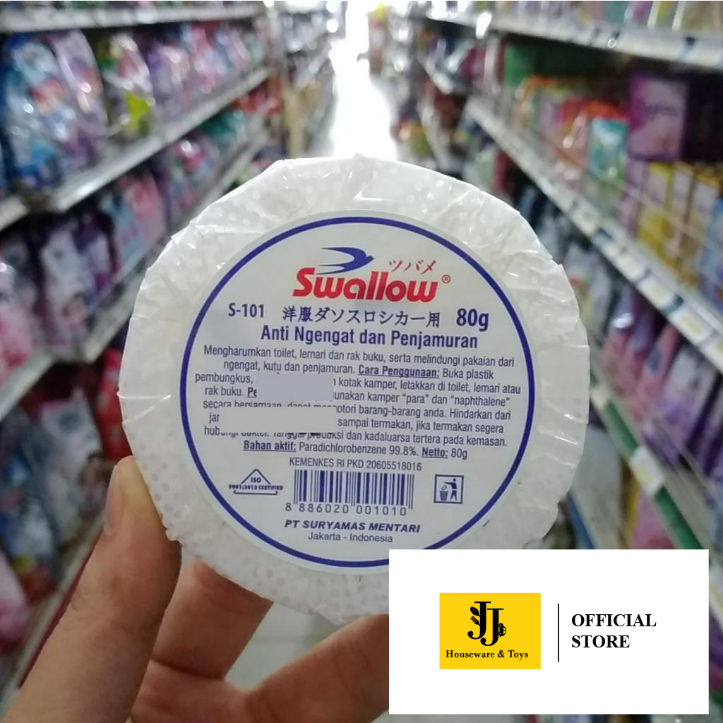 Swallow S-101 Champor Kamper 80gr merupakan kamper berkualitas tinggi yang dapat memberikan keharuman pada setiap lemari pakaian, ruangan di rumah Anda dan menghilangkan bau tidak sedap. Kamper ini efektif melindungi pakaian dan barang-barang dari ngengat atau jamur, serta menyerap lembab, dengan desain praktis dan mudah diletakan dimana saja.