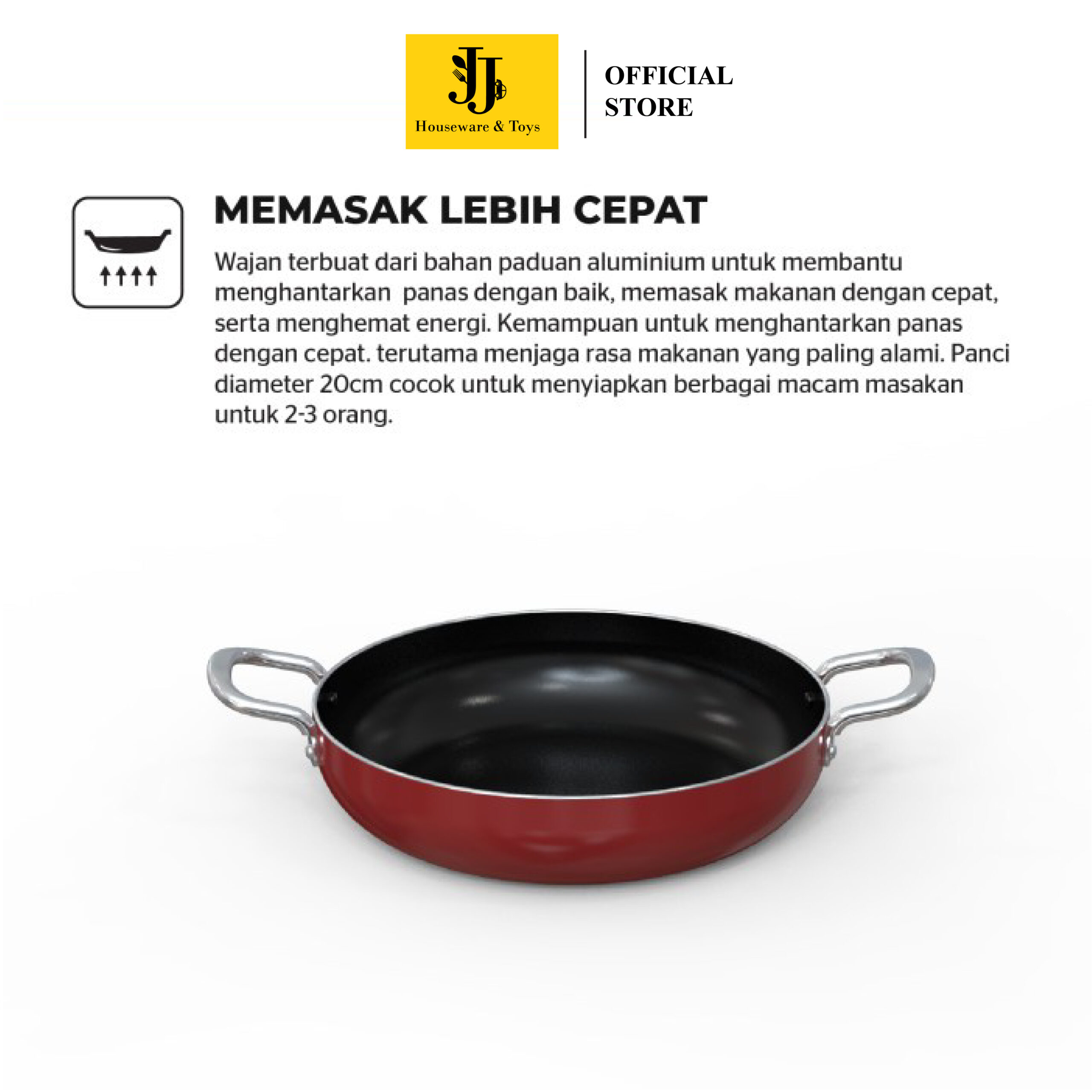 1. Terbuat dari paduan aluminium dengan perpindahan panas yang baik. Memasak makanan